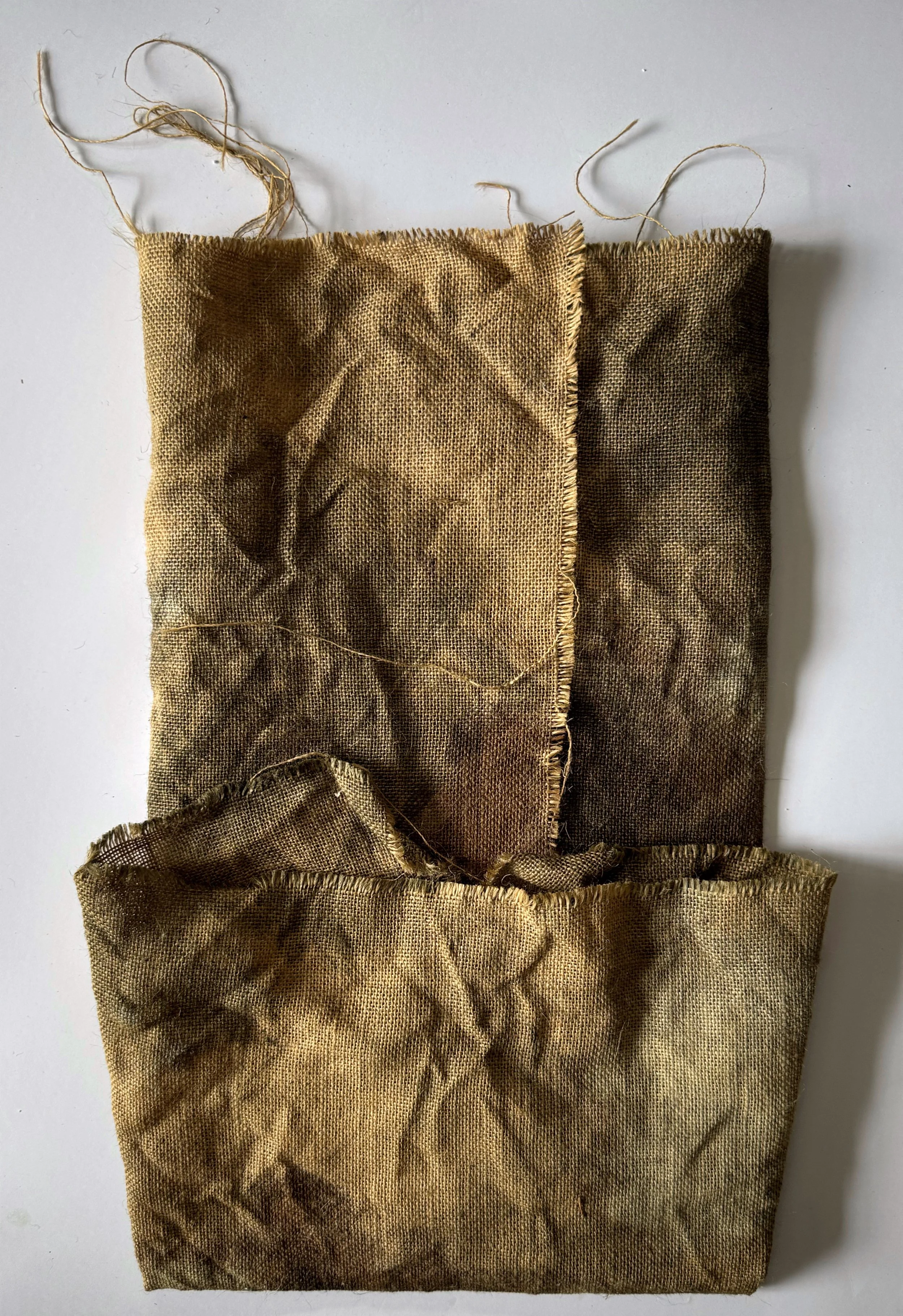 inner textile, 30x40cm, embroidered jute, thread, wool, wool padding, ink, bleach, 2025