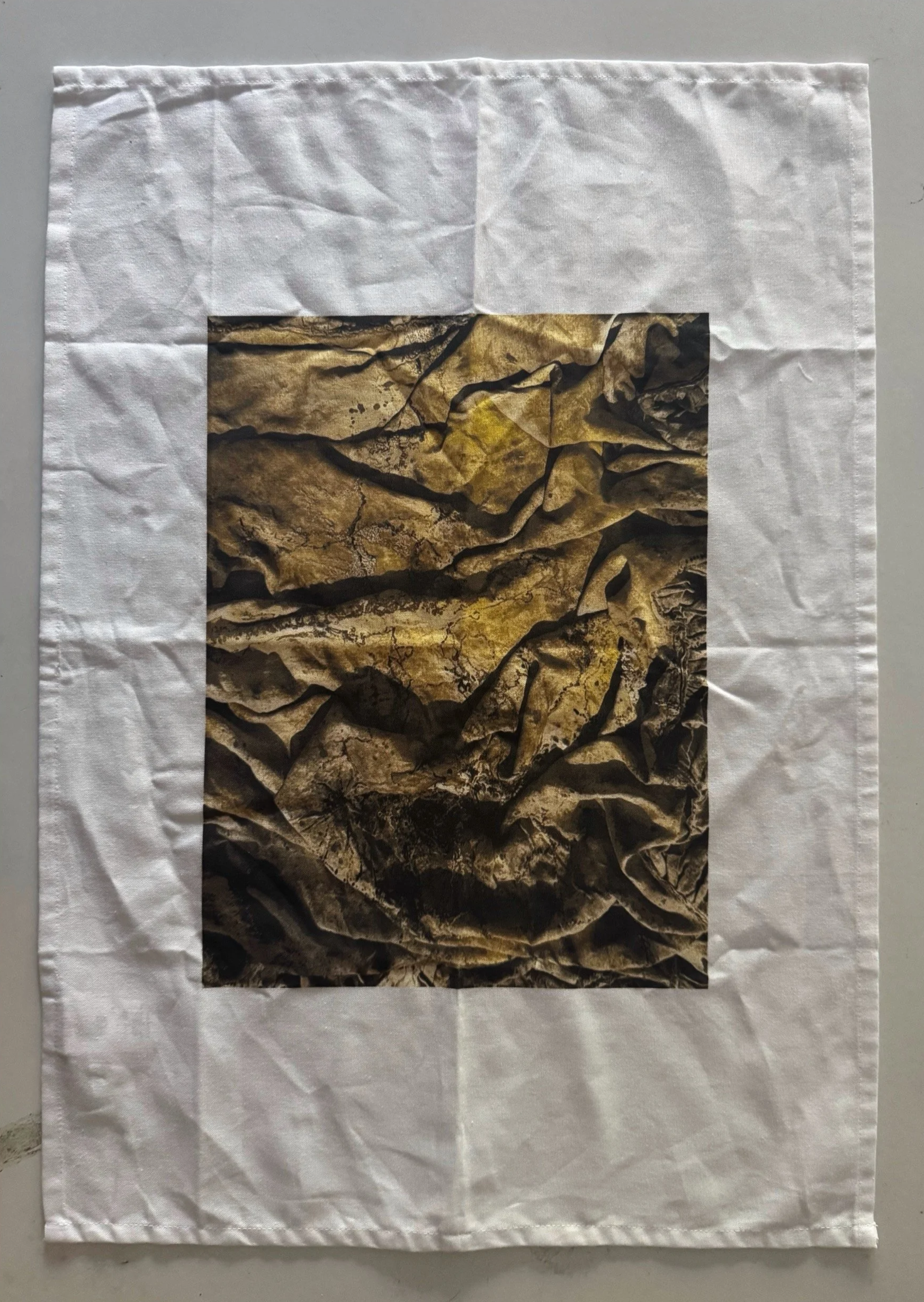 50 x 70 cm cotton hanging loop. 170 gsm, water based ink